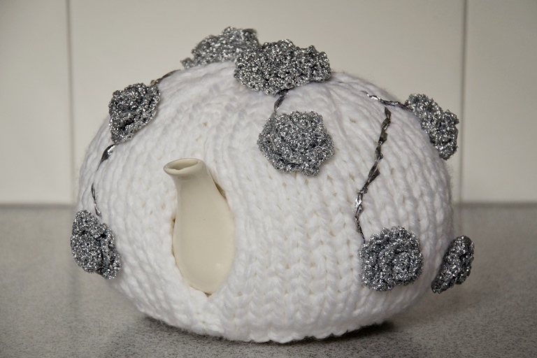 Warme, witte theemuts voor feestelijke kopjes thee.
